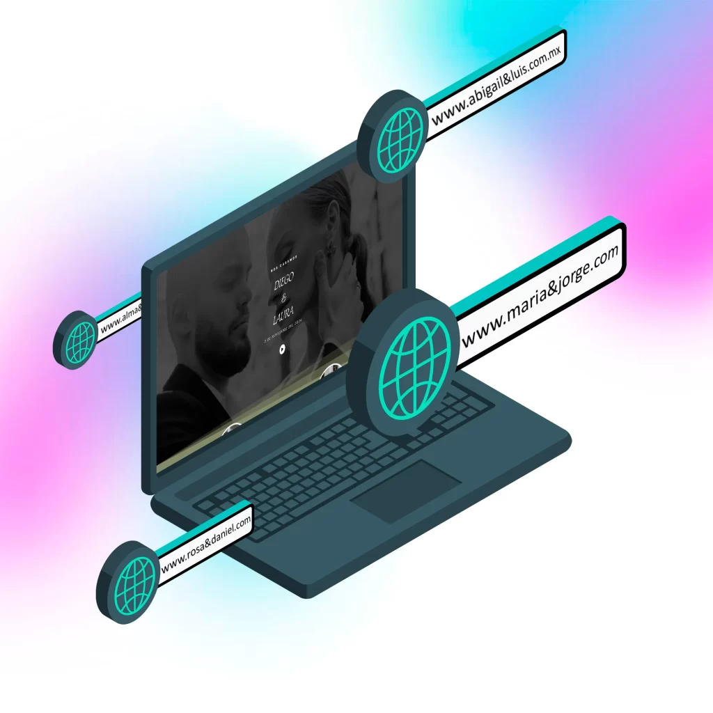 Haz que tu invitación se vea más exclusiva con un dominio único como tu evento, como “www.tu-evento.com”, que le dará un toque mas personalizado y memorable.