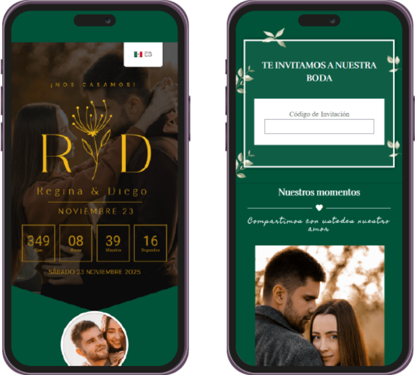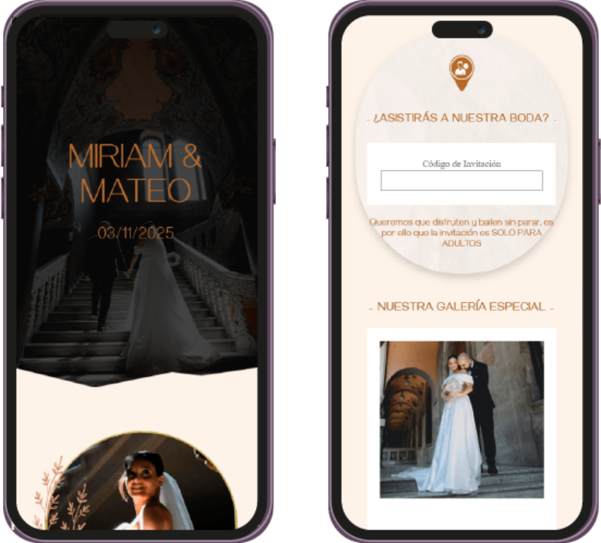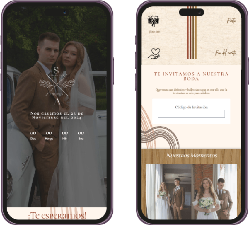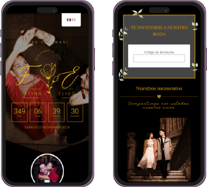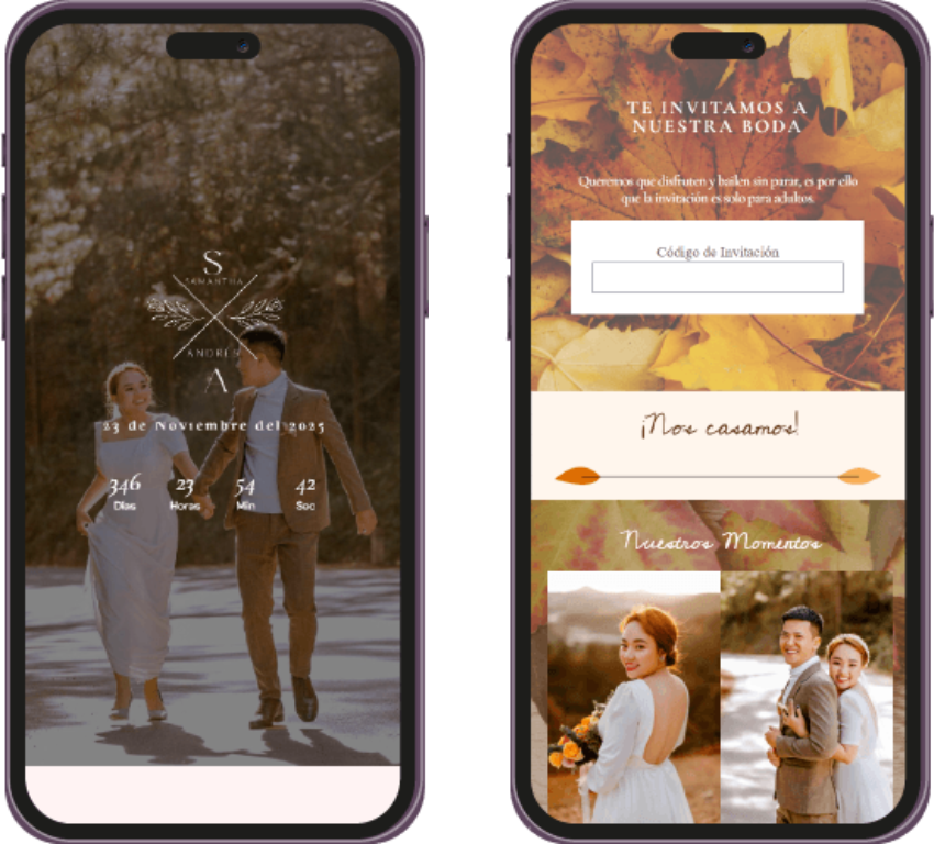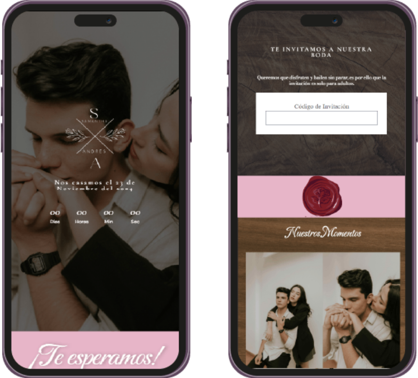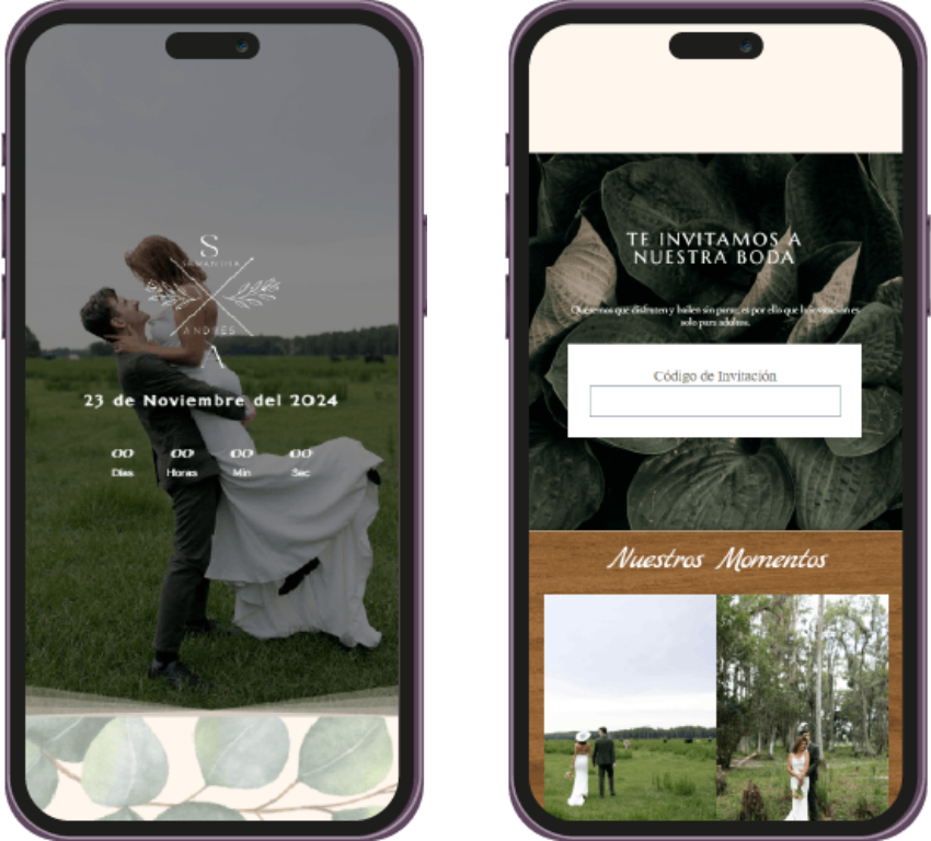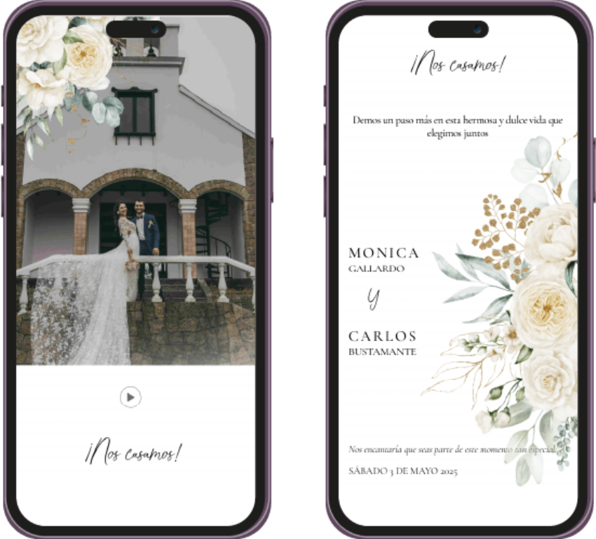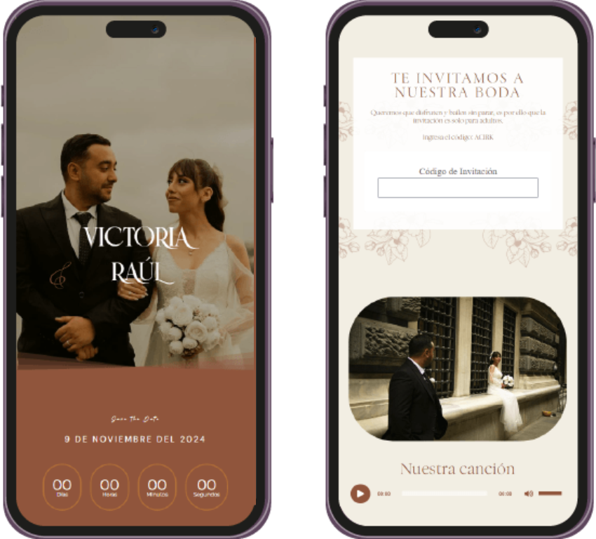 Un recordatorio visual único, perfecto para enviar por WhatsApp o redes sociales, para que tus invitados marquen la fecha en sus calendarios. Ya sea en imagen o web, hazles saber a tus invitados que tu evento se acerca.
