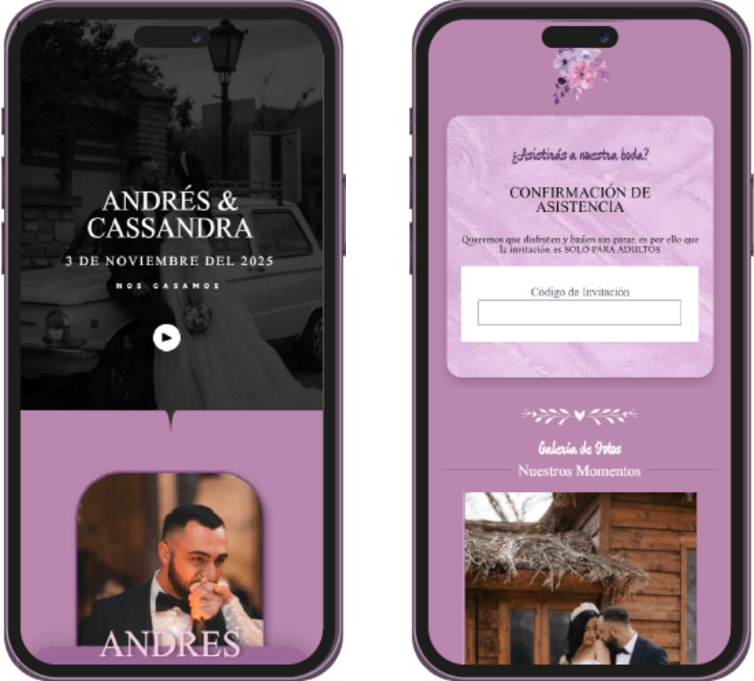 ¡Increíble servicio! Las invitaciones digitales fueron super rápidas de hacer y quedaron preciosas. La aplicación para confirmar asistencia es super fácil de usar y el soporte al cliente es muy amable y atento. 100% recomendados.
