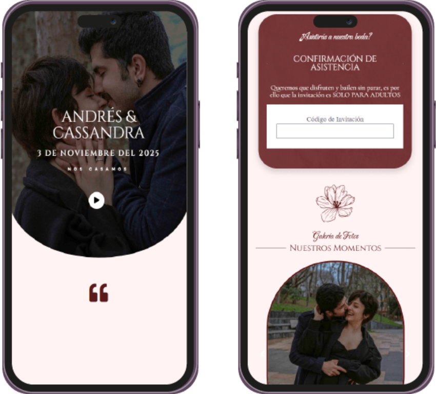 Desde el diseño hasta el servicio, todo fue perfecto. La app para confirmar la asistencia es muy fácil de usar y las invitaciones digitales son de lo más elegantes. Además, el equipo de atención fue rápido, flexible y siempre con una sonrisa. ¡Recomendadísimos!